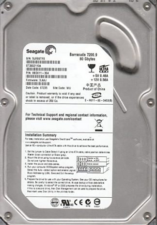 ST3802110A, 5LR, WU, PN 9BD011-304, FW 3.AAJ, Seagate 80GB IDE 3.5 Festplatte